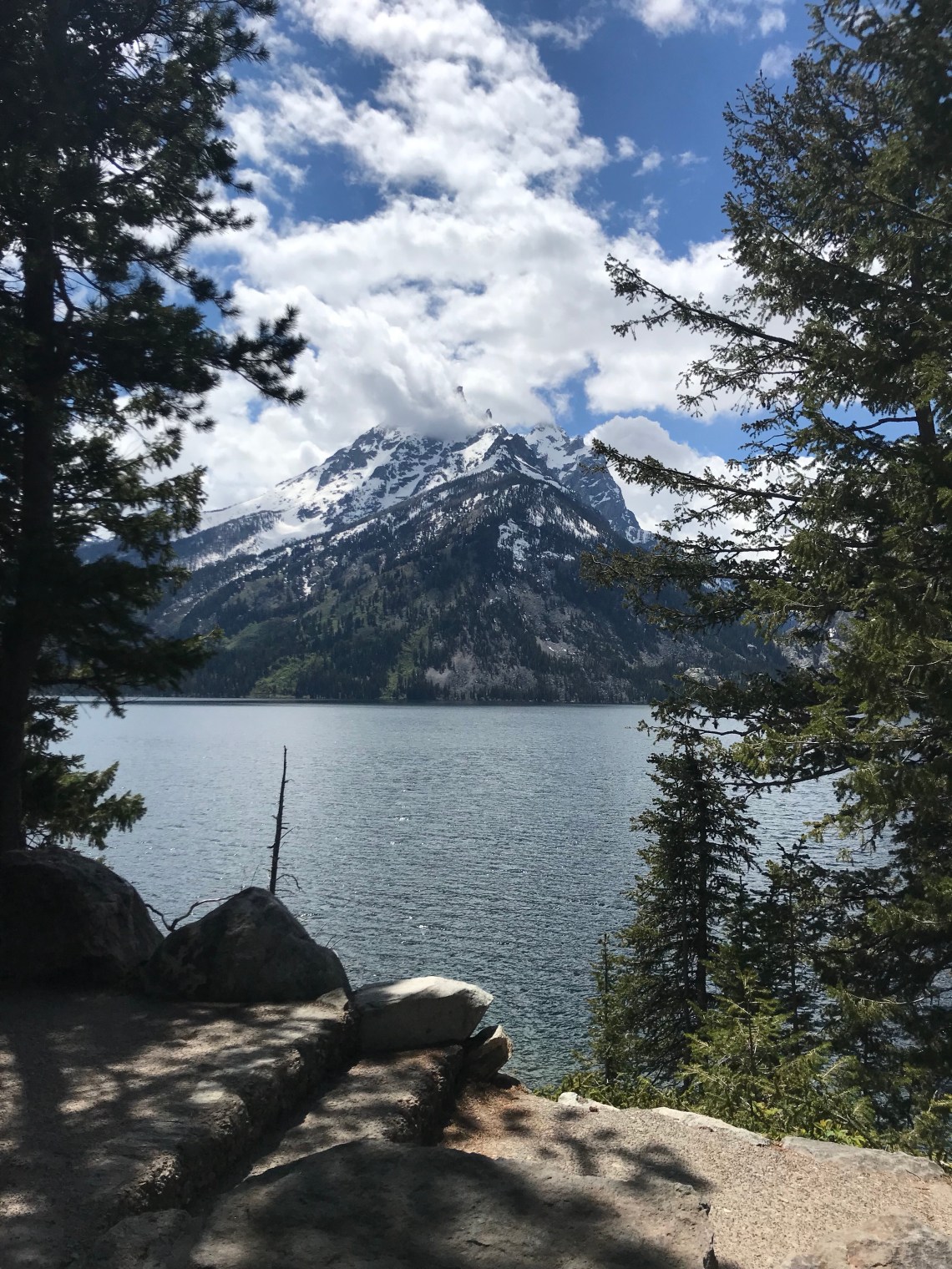Between glacial waters and the clouds, the Teton Peaks play hike and seek. The closer you think you are, the further away they seem.
