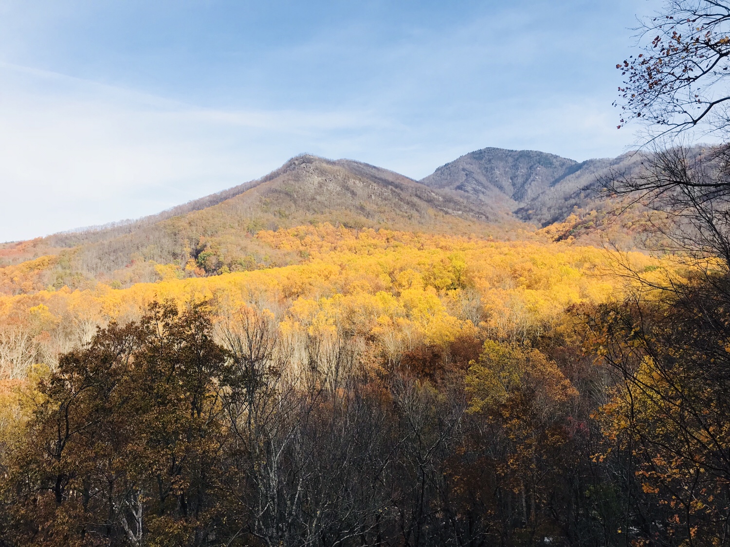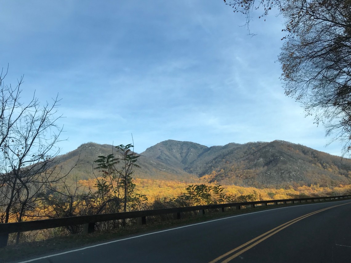 As you approach Newfound gap at sunset, the rays wash the fall colors in a golden glow.
